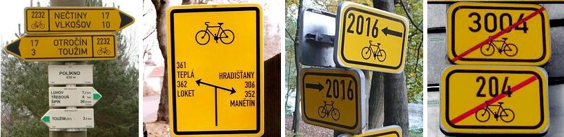 In der Tschechischen Republik sind Radwege mit verschiedenen Arten von Schildern gekennzeichnet. Die Grundaufteilung ist in Straßen- und Fahrradmarkierungen unterteilt. Die erstgenannte Variante ist Teil der öffentlichen Verkehrszeichen und ihr Aussehen und ihre Verwendung werden durch Gesetze und technische Anweisungen bestimmt. Alle Straßenmarkierungselemente haben eine gelbe Hintergrundfarbe und sind mit dem Fahrradlogo gekennzeichnet.