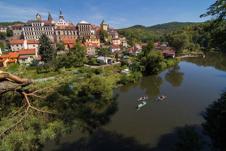 Die Eger zeigt heute ihre vielfältigkeit durch die grünen Wiesen, die Hopfefelder und den Auenwald. Am Weg fahren Sie aber auch an die Schlossanlage (in Libochovice) die Wasserburg (in Budyně) und die Festung in (Terezín - Theresienstadt) vorbei. Die Festung Theresienstadt war nicht nur ein KZ Lager im zweiten Weltkrieg sondern ein bedeutsamer Zeugnis der durchgedachten barocken Militärarchitektur. Die Strecke wechselt heute von Nebenstrasse zum Waldweg und zurück und bringt Sie endlich zur Elbe nach der barocken Stadt Litoměřice. Lassen Sie sich mit dem unerwarteten Flair dieser Weinstadt in einer der lokalen Weinstuben oder in Restaurants verwöhnen. Am heißen Sommerabend werden Sie sich auf einer der Außenterrassen wie im Mittelmeer wohlfühlen. Unterkunft in Litoměřice